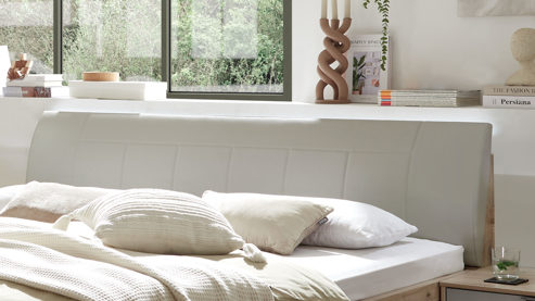 Bettgestelle sind in vier Breiten, vier Längen und zwei Kunstlederfarben erhältlich