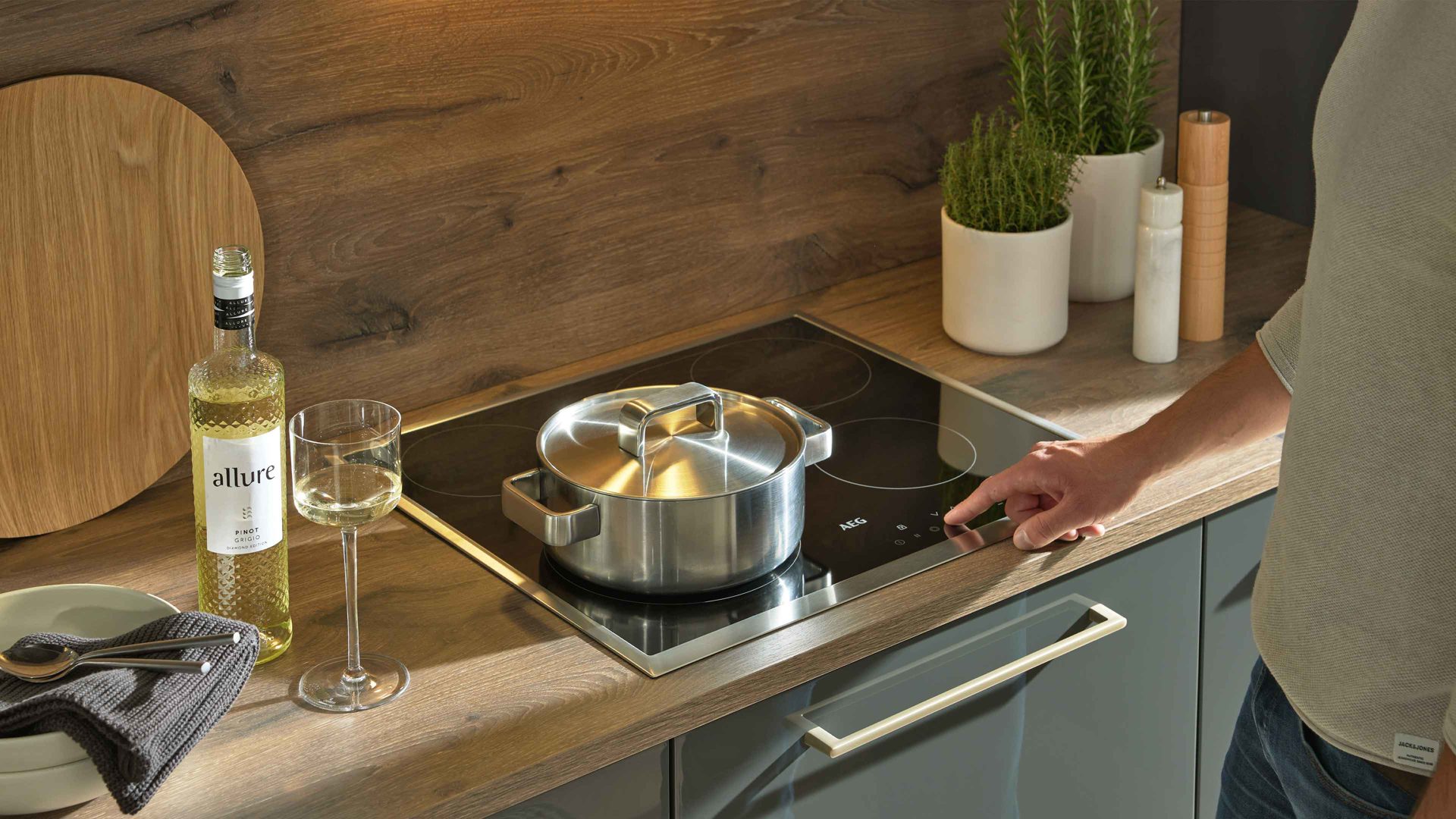 • Die Abbildung zeigt ein Wohnbeispiel, welches auch Dekoration sowie separat erhältliches Zubehör enthält. Im Lieferumfang enthalten sind eine Kücheninsel und eine Hochschranklösung.