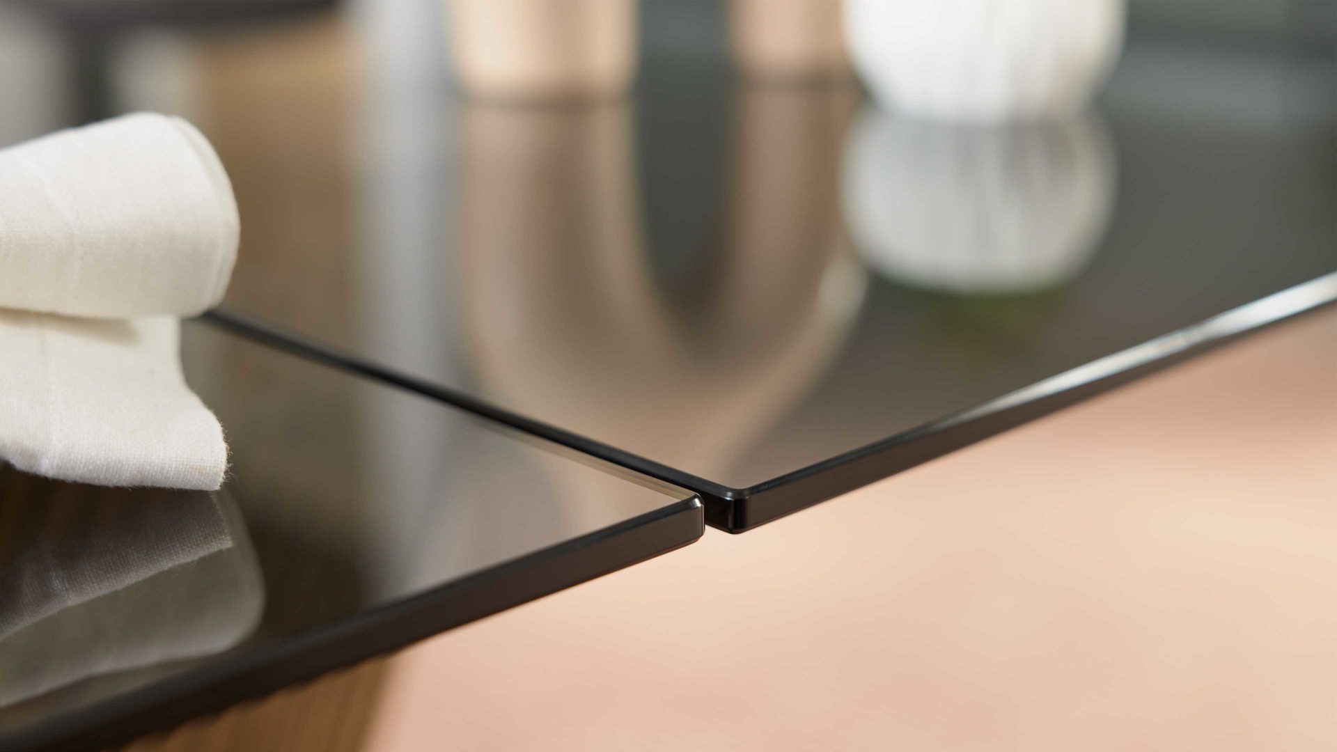 Zu den funktionalen Highlights gehören außerdem die verdeckten Rollen unter der Bodenplatte. Sie sorgen dafür, dass Sie den Wohnzimmertisch flexibel platzieren können.