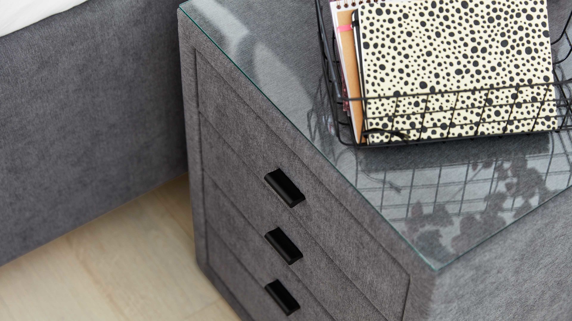 dunkelgrauer Stoffbezug ENF 09 - drei Schubladen